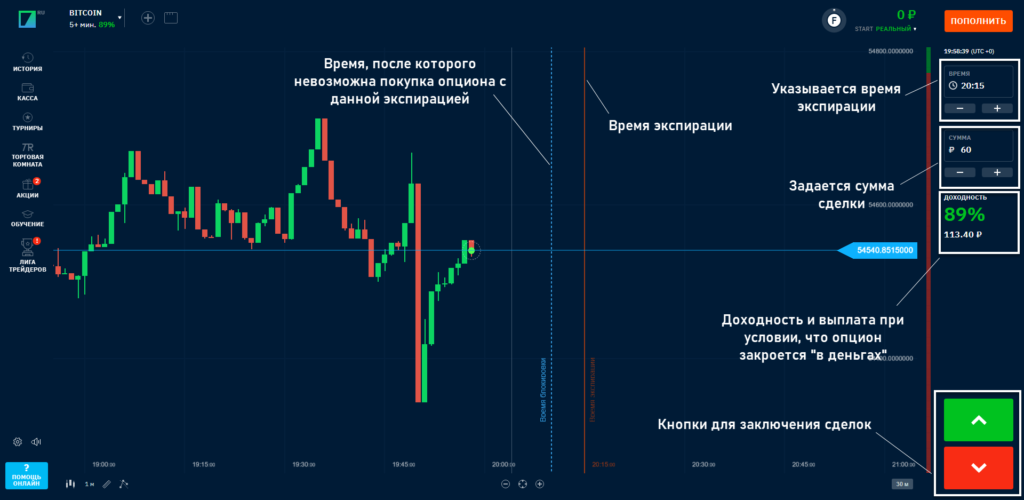 - Изучите интерфейс: как выбирать активы, задавать сумму сделки и срок экспирации.