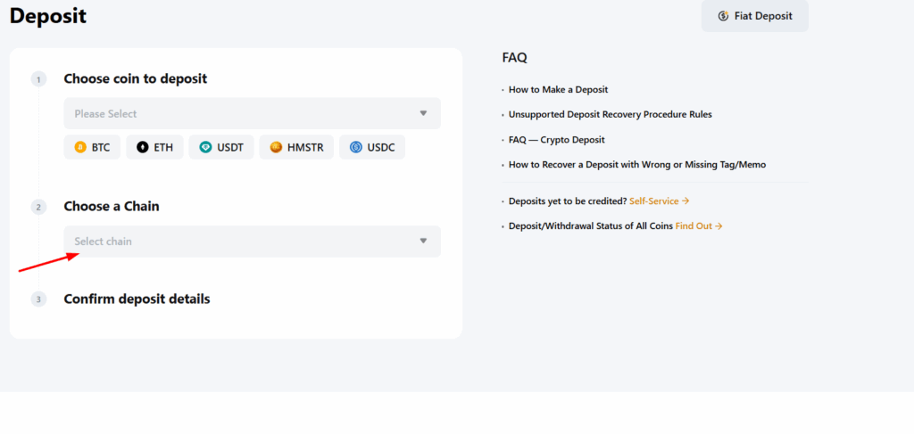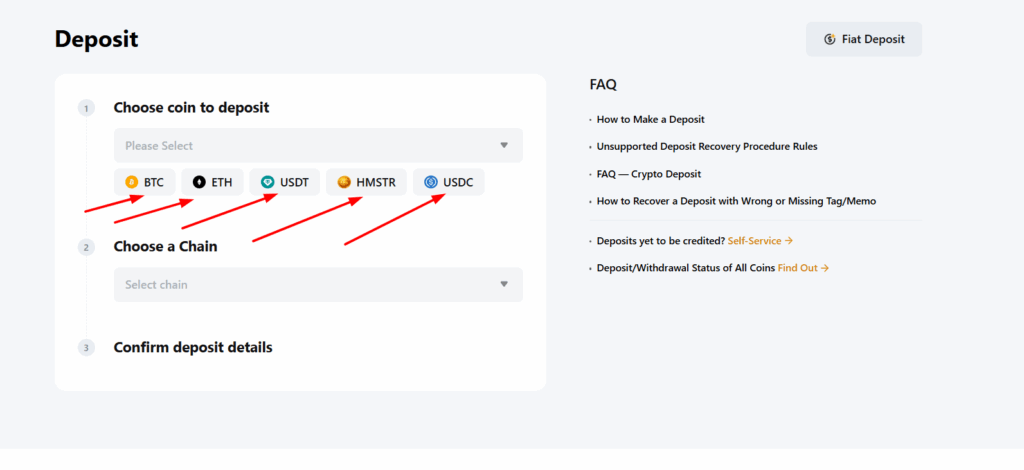Шаг 4: Выбираешь «Deposit» (Пополнить)