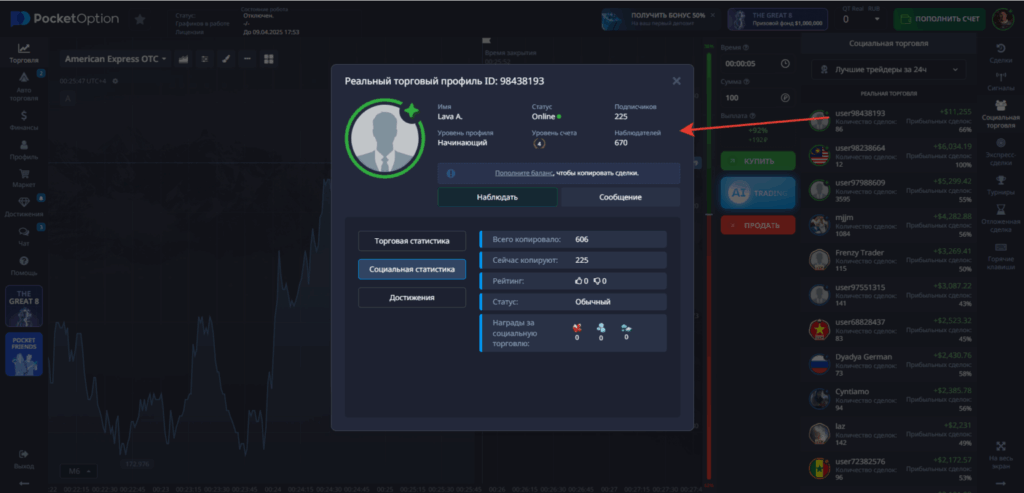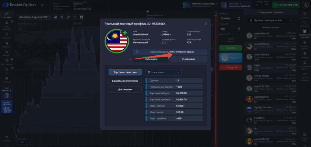 Выбор трейдера для копирования — это одновременно наука и искусство, требующее аналитического мышления детектива и интуиции психолога. В рейтинге Pocket Option представлены тысячи трейдеров со всего мира, каждый со своей уникальной историей успеха и торговой философией.