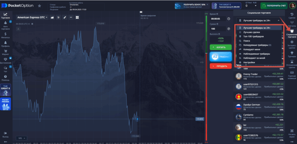- Погружение в социальную торговлю: Перейдите в раздел «Социальный трейдинг» через главное меню. Здесь открывается завораживающий мир, где каждый клик может стать началом прибыльного партнерства.